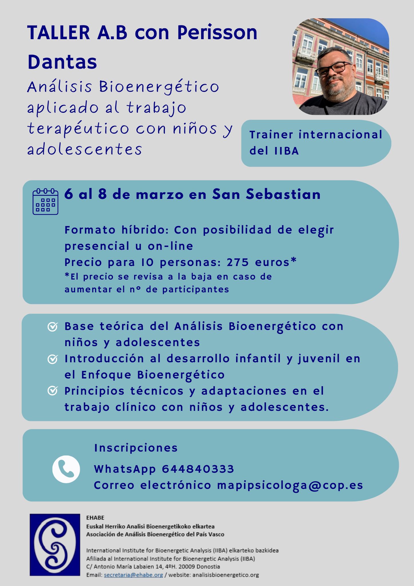 - Estudio de la teoría del A.B., incluyendo la comprensión del proceso energético-corporal, del carácter y de las maneras que están representados en el cuerpo y en la estructura defensiva de la personalidad. Los participantes en la formación serán invitados a explorar en los seminarios su propia estructura de carácter y su proceso energético así como los de los demás alumnos del grupo.